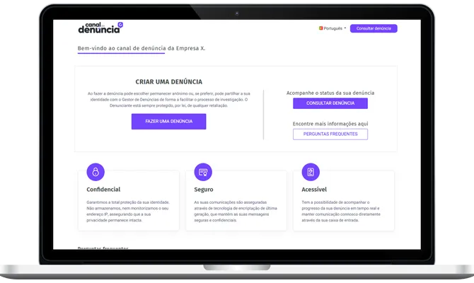 Proteja a sua empresa com o canal de denúncias mais competitivo do mercado. Seguro, confidencial e pronto a funcionar.
